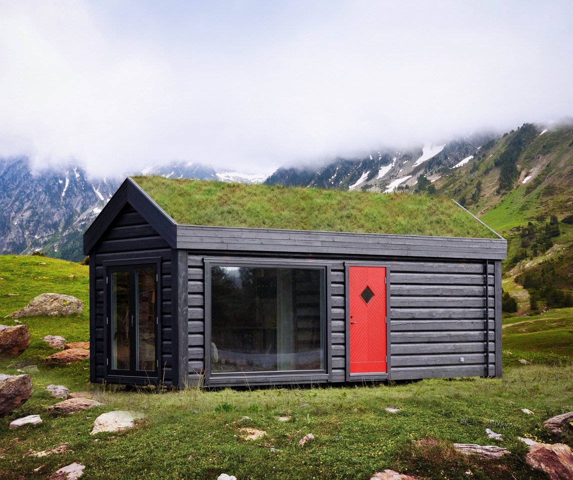 Denne naturstammenhytten ble bygget som et demohus til Kongsberg-utstillingen og senere levert til en ny kunde. Bruksareal 20 m² + hems 7 m².