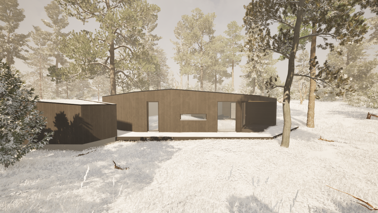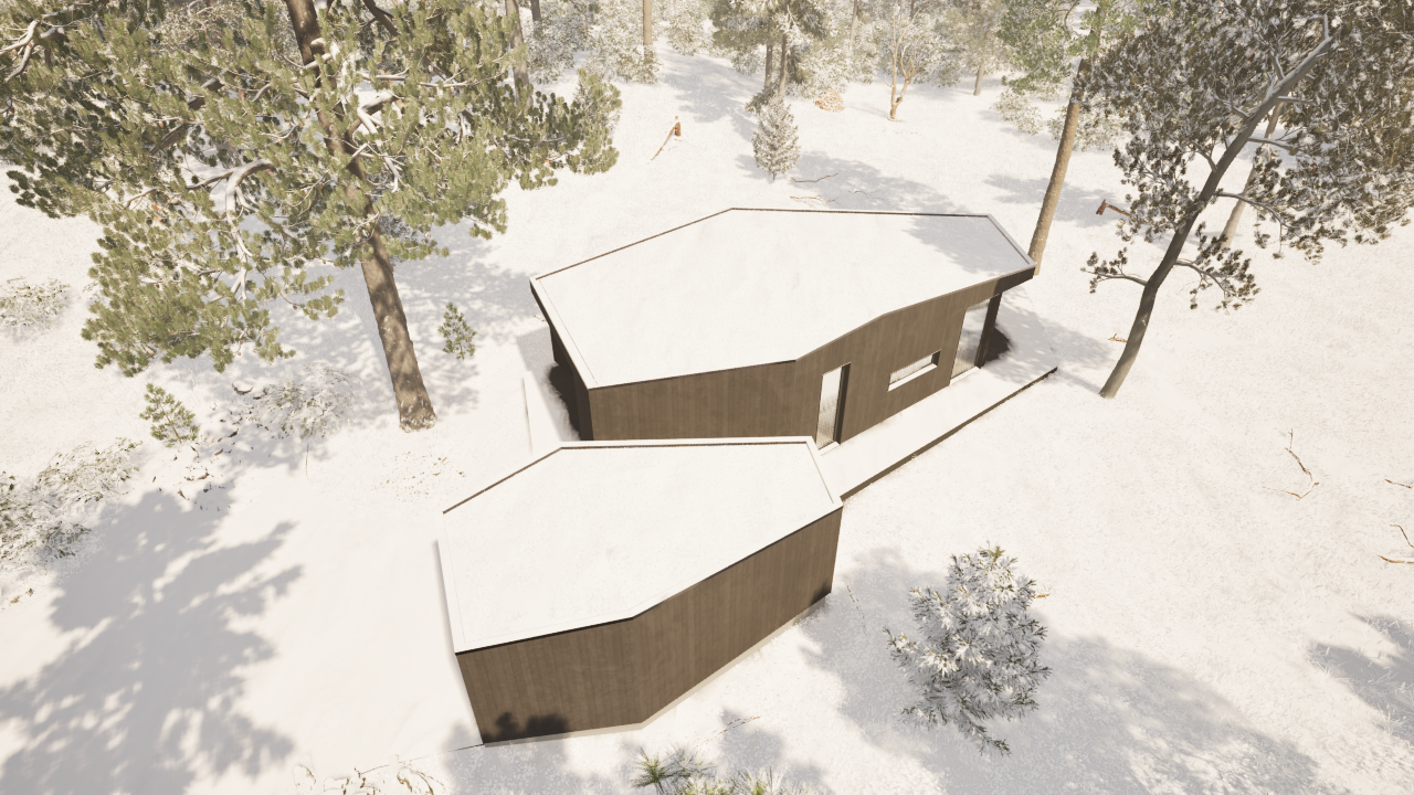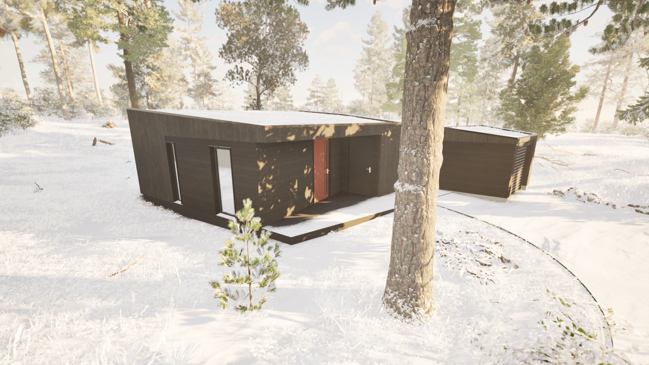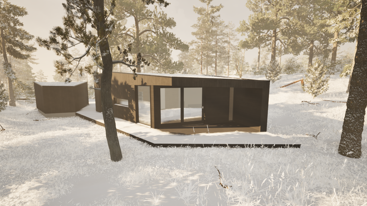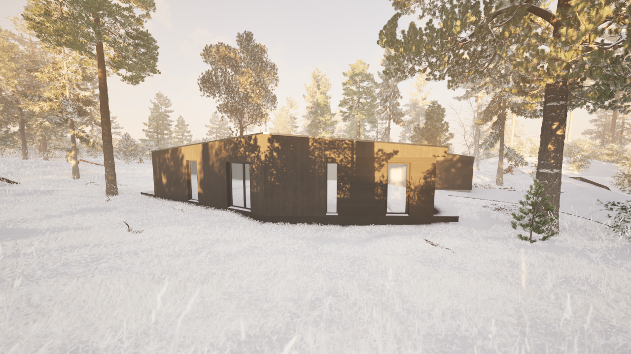 Denne lille hytten eller Hammerfestingen er bygget av massivtreelementer (CLT- eller MHM-elementer). Husets design er inspirert av naturen og passer perfekt inn i alle naturlige omgivelser. I huset benytter vi kun naturlige materialer (som Steico trefiberisolasjon, Proclima diffusjonsåpne produkter, Fermacell m.m.). Husdesignet kan tilpasses av kunden (størrelsen kan endres, rommenes plassering samt plassering av vinduer og dører). Dette huset kan også bygges som en bolig for helårsbruk. Det finnes et bredt utvalg av innvendige og utvendige materialer som kan benyttes for denne husmodellen. Standard planløsning har 3 soverom, bad og stue/kjøkken + bod. Prisene starter fra 1 990 000 kr inkludert levering og montering.