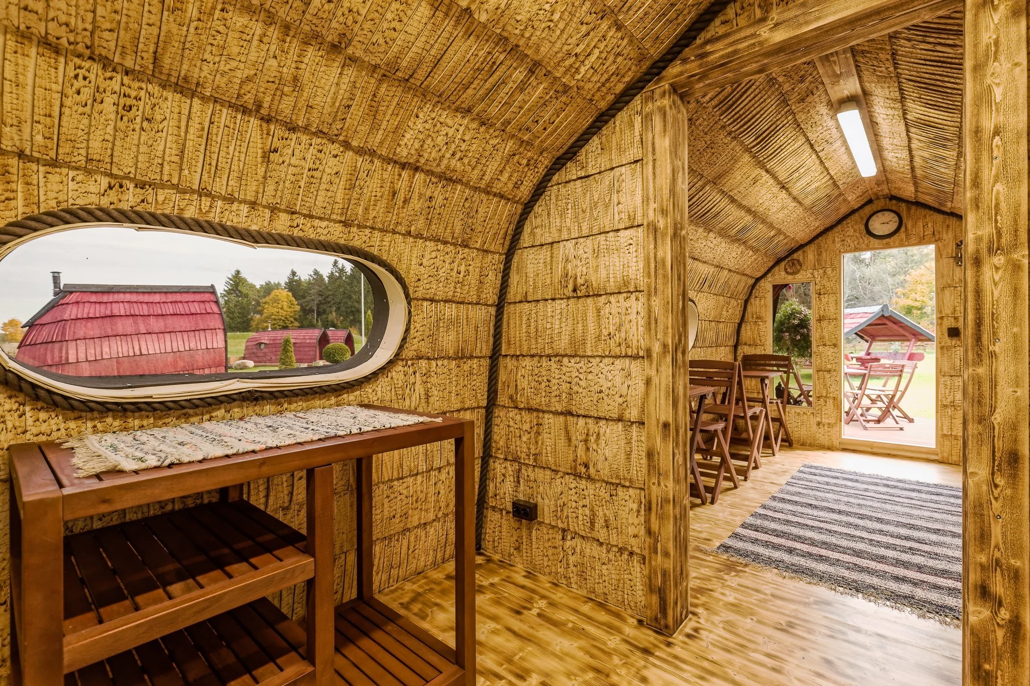 Vanligvis med to rom: et stort soverom og en stue med plass til et lite kjøkken. En romsligere modell som kan huse 4–6 personer. Kan leveres med håndlagde senger og annet treinteriør. Fargevalg innvendig og utvendig etter kundens ønsker.Saunahus (2,4 x 3,6 m / 2,4 x 6 m / 2,4 x 8 m)