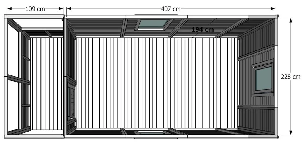 Vognhus 4,15 m (+ 1,15 m veranda): 69 900 kr